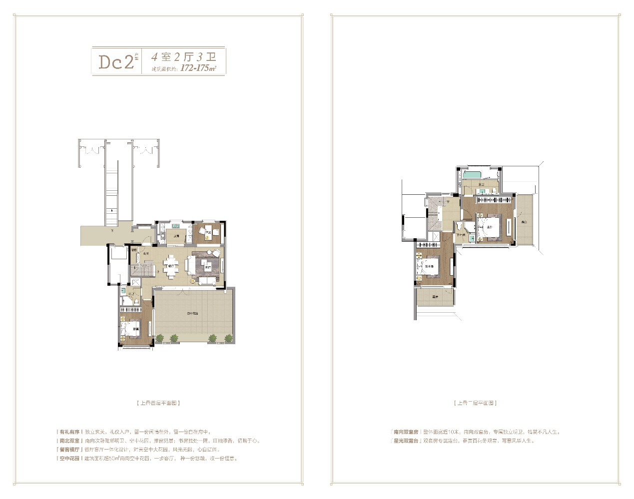 其中,精装中式叠院以上庭下院、两两相叠的创新形制,满足中国人对于庭院生活的向往。下叠多重庭院、阳光地下室,有天有地,悦享闲情院落生活;上叠便捷电梯、超大面宽、首创空中庭院设计,楼上亦能养花饲草,悠享更多阳光绿意。